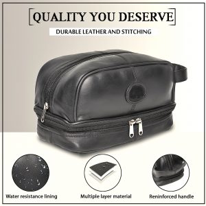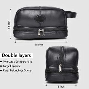 Sheep Leather Hanging leather Dopp kit with hanging hook, Zips around for easy transportation.