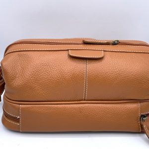 Sheep Leather dopp kit with zipper pocket on bottom with mesh compartment.