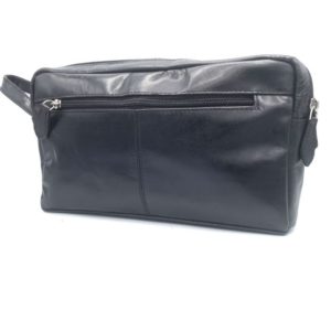 Sheep Leather dopp kit with zipper pocket on bottom with mesh compartment.