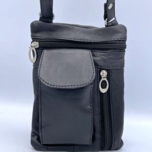 Sheep Leather dopp kit with zipper pocket on bottom with mesh compartment.