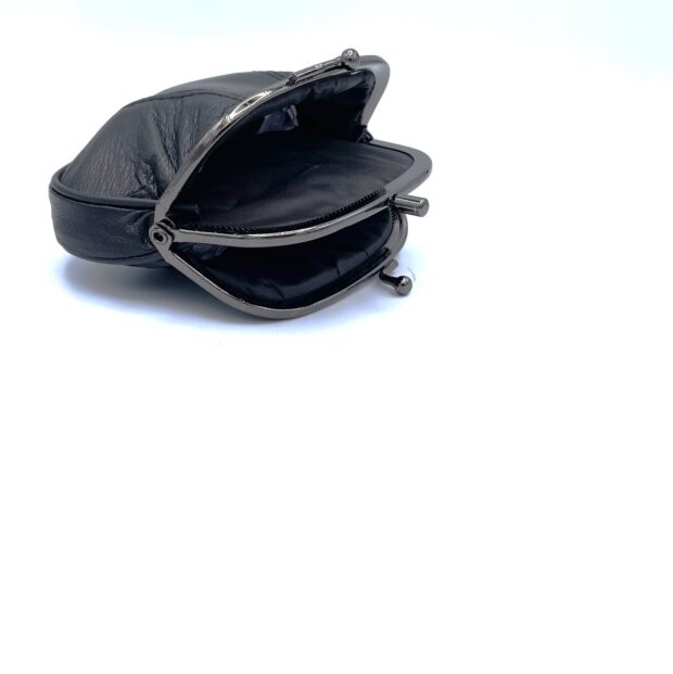Leather coin purse with bottom zipper pocket and metal frame. Approx 3.5″ MIN 12 Pcs