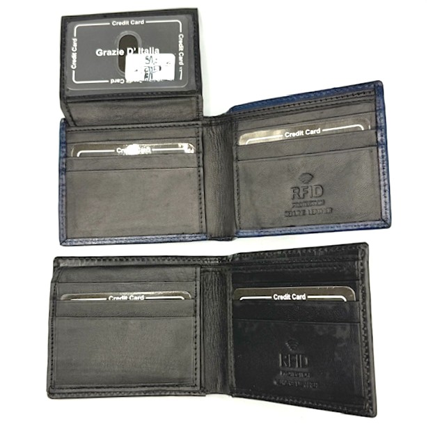 Fish Printed Leather with sheep inside. Bifold Wallet with RFID Protection