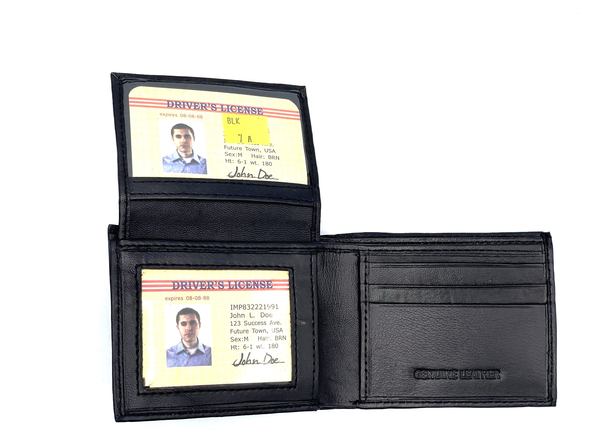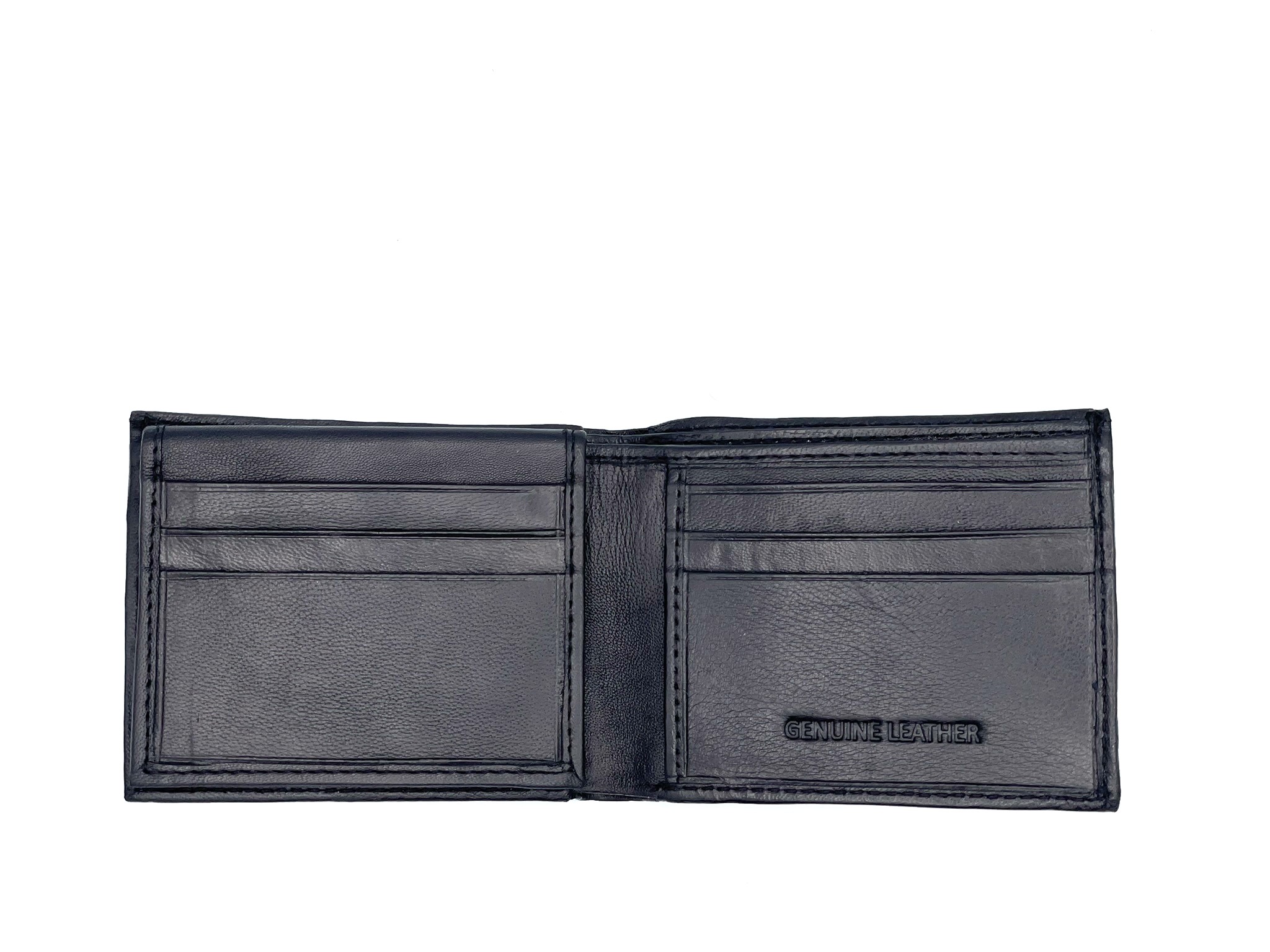 Leather wallet with flap up. Available in Black and brown