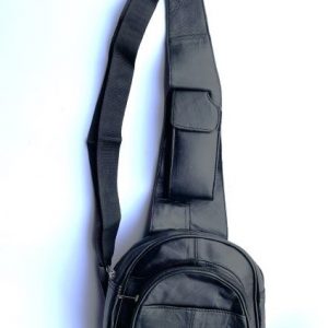 LEATHER BODY BAG WITH LARGE FRONT POCKET, ONE EA ZIP POCKET IN FRONT AND BACK, CELL PHONE