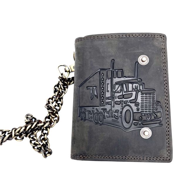 Cow Hunter Leather Wallet with Chain and RFID Protection