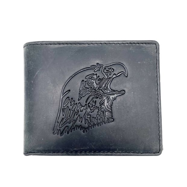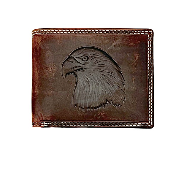 Cow Leather Oil Pull Up Leather Wallet with RFID and Eagle Head embossed.