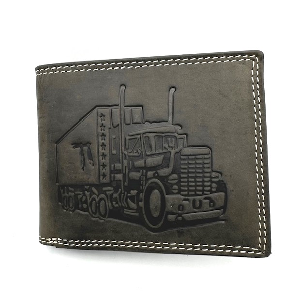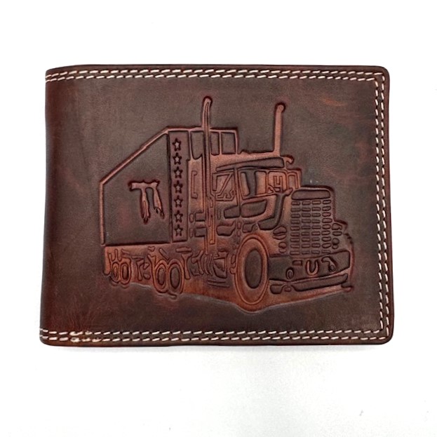 Cow Hunter Leather Wallet with Truck Embossed in gift box. RFID Protection