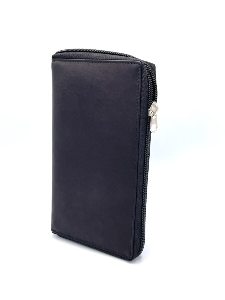 Cow Napa Leather Zip Around Credit card Organizer in Black and Brown. RFID