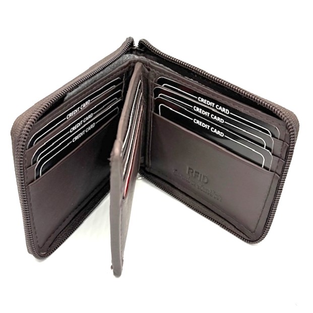 Cow Napa Leather zip around wallet with RFID Protection. Gift Boxed