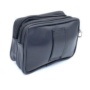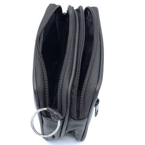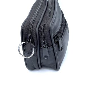Sheep Leather Pouch with main zip compartment at top and two zip pockets on each side with key fob,