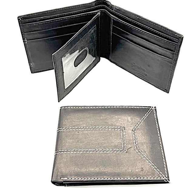 Cow Leather Wallet with middle flap for extra card and ID. Contrast stitch designs on main part.