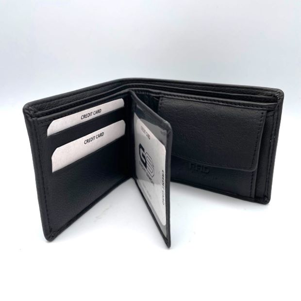 Cow Leather  Wallet with middle flap for two id windows and coin pocket, RFID protected, Gift Boxed