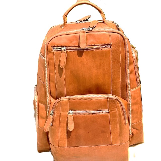 Cow Oil Pull Up Leather large backpack with separate Laptop compartment, Open fully to pack like carry on bag.