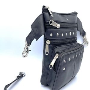 LEATHER BAG WITH METAL HOOKS ON SIDE, DETACHABLE STRAP