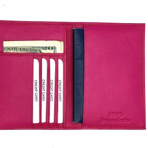 Leather passport cover with adjustable neck strap. Can be used for immunization cards / Vehicle Documents.